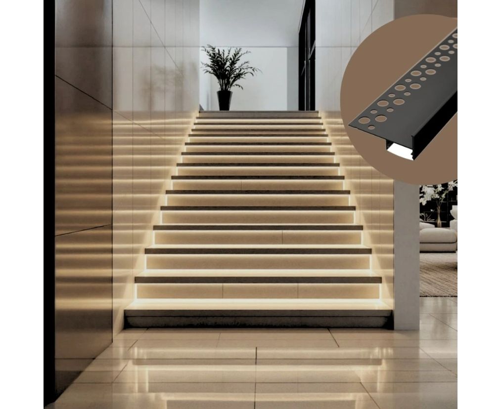 Profil LED Aluminiu Negru pentru Trepte Scări